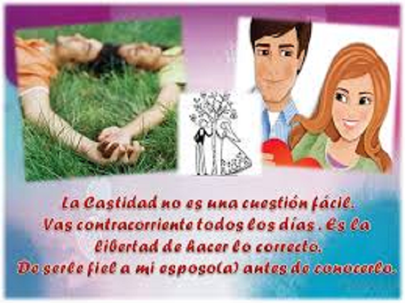 Los adolescentes sexualmente activos, frecuentemente pierden autoestima y admiten vivir con culpas. Cuando deciden dejar de lado la intimidad física y vivir castamente, se sienten como nuevos y crecen como personas. Además, mejoran su potencial intelectual, artístico y social. Con el sexo no se juega. Cuando alguien te presione, piensa en lo que vas a responder: “Sólo te lo pido una vez, y no insistiré más” / “Eso es justo lo que me preocupa. Prefiero conservarme para alguien que me va a querer toda la vida”.